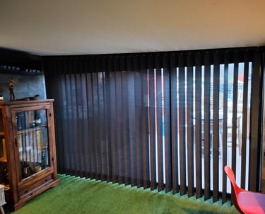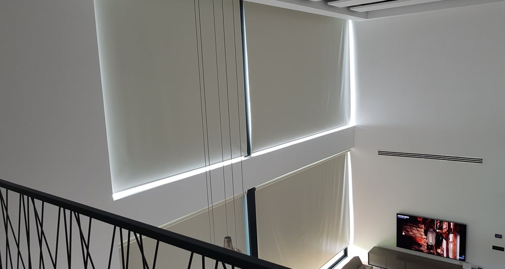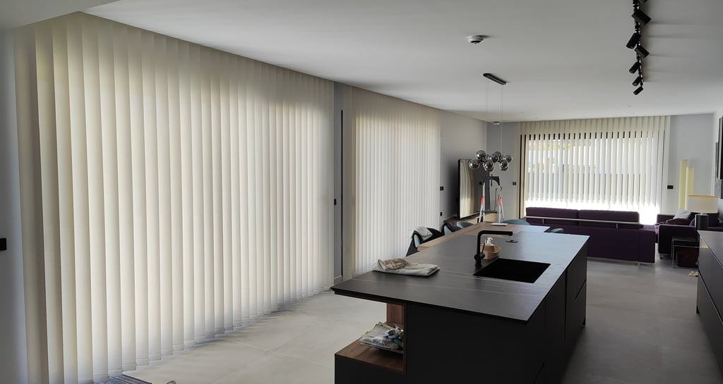 tejido sintético con grandes ventajas, eficiencia energética y control de la luz, robustez y fácil mantenimiento, cortinas verticales, enrollables, paneles, versatilidad de ambientes; posibilidad de conectarlos a un motor con mando a distancia, wifi, domótica.